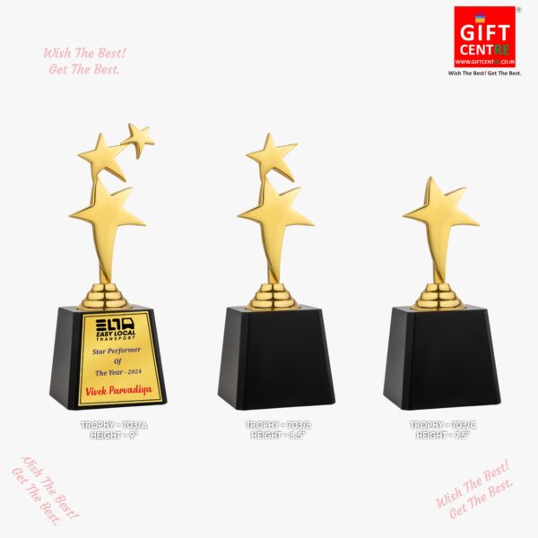 Star Trophy Golden Shiny Finishing. Fiber Material Golden Colour With Maroon Base. Giftcentre-Mcb-627A 9.5′